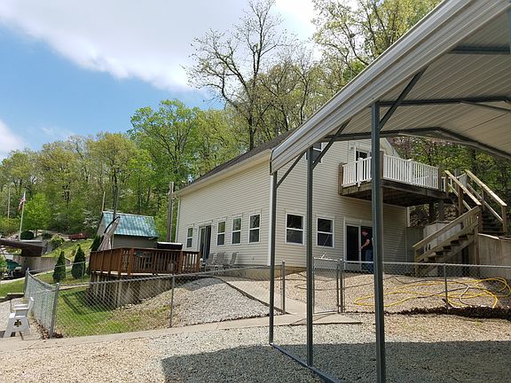 Back on the market after having the waterfront dredged! Waterfront home located in Goose Creek Lake subdivision, a 400 acre gated lake community 1 hour south of St. Louis. This 1400 sq ft 2-story home has a lot to offer including 2 Lots, 3 Bedrooms + additional sleeping area, 2 full Baths, 10 ft high ceilings on first level, full kitchen with all appliances including dishwasher, refrigerator, stove, washer and dryer, etc. Each bedroom upstairs has its own private balcony. Lakefront home on Goose Creek Lake (located at the end of Family Cove) includes 16' x 40' oversized garage with 10' door. 5000 lb boat lift with canopy. 8' x 8' shed next to boat lift to store water toys and a 24' x 24' carport to cover your boat in the winter. All household contents shown with appliances are included. Enclosed fenced area around patio to secure your pets.