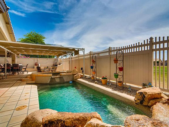 Location! Entertainers paradise with amazing back yard that will make neighbors jealous. This beautiful home won't last long. Single story over 2200 square foot home with 3 car garage on the golf course with no HOA! One owner with pride ownership. This well maintained beauty located in sought after north east Mesa and is close to freeways, shopping, Boeing, Lockheed Martin and minutes away from ASU, Sky Harbor Airport, Scottsdale and so much more. No 2 stories behind you. Large kitchen flows into formal dining room with bay window. open floor plan with leads to large covered patio and laguna pebble tec design pool and spa. Large master bedroom with nice sized closet, separate garden tub and shower. His and her sinks in master bedroom. $12,000 in newer custom metal solar security screens