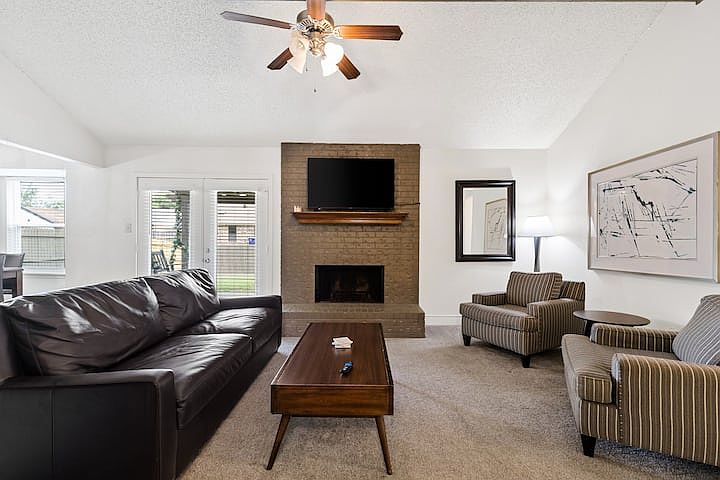 Welcome to this beautifully maintained 3-bedroom, 2-bathroom home that perfectly balances comfort and convenience. With a split floor plan, this spacious layout features a large living room complete with a cozy wood-burning fireplace. The expansive kitchen offers abundant storage and countertop space, ideal for all your culinary needs. Outside, enjoy your private retreat with a massive backyard, covered patio, and ample space for outdoor entertaining. Located in the highly sought-after Watauga neighborhood and just minutes from shopping, dining, and parks! Fully furnished and available as a short term, medium term or long term rental. This Turnkey move-in ready property comes furnished with flexible leasing terms. Please contact us for specified lease terms and rates.