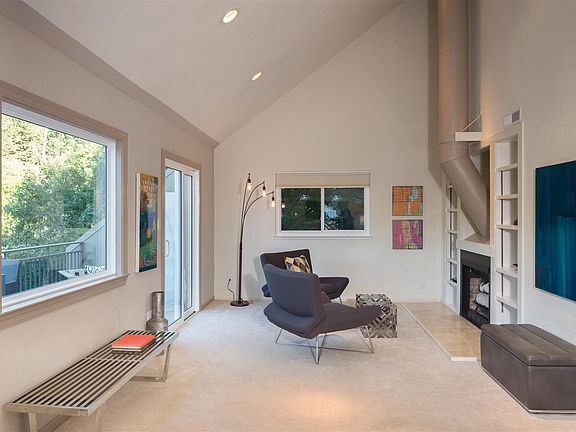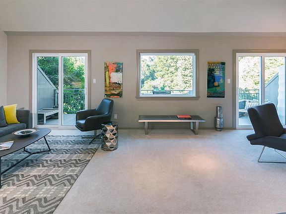 This imaginative modern home maximizes its hillside site with verve and panache. Each of its three main levels features a house-wide deck floating amid the peaceful trees of Shepherd Canyon, while broad windows maximize the view from every major room. The overall feel is one of sophisticated, European design, with stylish wood-and-glass doors and simple, geometric lines carrying the day. Step inside and you'll find wide-plank hardwood floors, a chef's kitchen, attached 2-car garage, huge family room, and more than enough space for everyone. Close to the Montclair Village trail and beautiful regional parks.