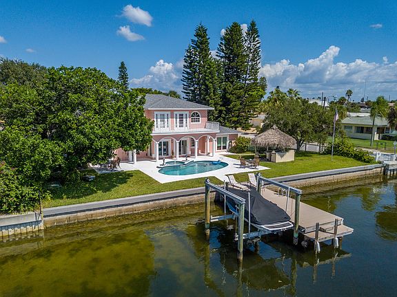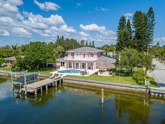 Classic enduring design and masterfully crafted with the finest materials and an eye for detail this home is best characterized as the mini Don Cesar. With extraordinary landmark living it is nestled on the intracoastal waterway with direct access to the Gulf of Mexico on deepwater. This impeccable home represents everything you would want in a modern abode on a convenient semi-private & quiet street in the heart of St. Pete Beach within walking distance of dining, shopping & entertainment. The deep-water dock with a new 10,000 lb boat lift and and quick access to open water (less than a 3 minute boat ride to the Gulf). This waterfront estate resides on a double lot with a plethora of space, natural light, car parking, entertaining, and luxury living! The capacious 3+ car garage will accommodate a collection of vehicles, paddle-boards, jet skis and kayaks. The elongated circular driveway is perfect for guests with extra parking for your entertainment pleasure. The intracostal side of the home is a total playground for friends, family and pets to enjoy. You will instantly fall in love with all the amenities. A covered veranda & the grand resort style backyard area are suitable for entertaining large parties and family events. This manse is the crown jewel of the neighborhood and is enhanced with stunning panoramic sunset views from your balcony with its western backyard exposure. The mother in law suite is not included in the heated sq. ft. boasting (approx. 500 sq. ft) with a full bath and a Murphy bed.