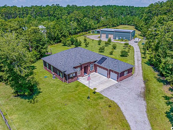 Do you want to be out of the hustle and bustle but still close enough to shopping, beach and golf? Then this home is one you have to see. Beautiful all brick home with an oversized 3 car garage. Situated on 3.99 acres this country setting is in a quiet area of Longs but just minutes from Hwy 9 and North Myrtle Beach. The property is encompassed on all sides with either wood or electric fencing. There is a 40 x 80 metal building on the back of the property which has 2 large garage bays, storage, work shop area and a separate living area. The main house was custom built in 2018 and has tile floors throughout and oversized Anderson windows. The kitchen boasts beautiful cabinetry, quartz countertops, stainless steel appliances, breakfast bar, island and a double oven. The primary bedroom features a trey ceiling with fan, two walk in closets, access to the screen porch and an en-suite bathroom with a tiled walk in shower. Let's not forget about the formal dining room, family room, and den. As you make your way to the other side of the home, you will find two more secondary bedrooms and 2 bathrooms. Plus a laundry room. The attached garage has space for 3 cars plus a storage room and a dog washing station. This property has a host of mature fruit trees including apples, pears, peaches, and one large plum tree behind metal building along with grape vines. There is also an out building with a chicken coop and large area for farm animals with moated area that runs into pond at back of the property. Perfect piece of paradise for you and your family to enjoy the peace and quiet of this location. Square footage is approximate and not guaranteed. Buyers responsible for verification.