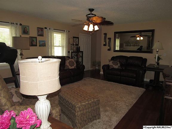 Fantastic well maintained home situated on .80 acre +/- with a private like feel in the back yard. Enjoy the stars at night from your deck and view of neighbors pond from deck and or dining area window. Better view of it fall / winter. Inground pool has plenty of privacy per seller. Hardwood floors in Living Rm, dining area and kitchen. Garage area 23 x 25 and a great basement with approximately 993 Sq. foot. the rest is the Garage. Also a 1/2 bath . Approximately 12-15 minutes to South Huntsville & 20-25 minutes to Guntersville. And Ditto Landing is approximately 10 -12 minutes. Great Home!