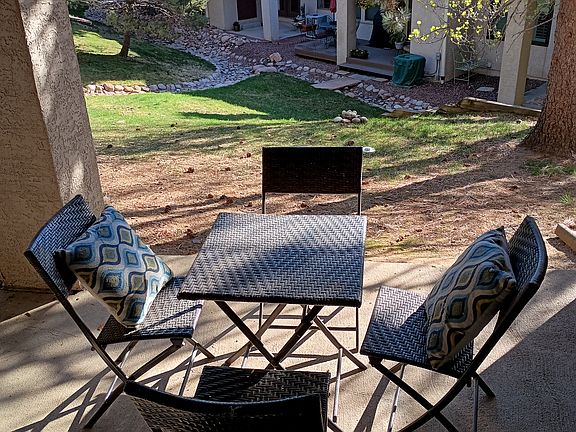 This townhome is as cozy as they come! Nestled at the top of a hill in a quiet community, this 2 bed/2 bathroom unit is furnished and ready to move in. Hard wood flooring throughout, conveniently located near the I25 and Garden of the Gods.Heated pool from May to September and a small gym. Lots of trails and walking right outside the front door! 20 minute drive to the Garden of the Gods park. University Village is ten minutes away which includes Costco, Lowe's, Kohl's, Trader Joe's, and plenty of dining. Pets and smoking are not allowed on the premises. Tenant is responsible for taking trash to the dumpster. The condo is furnished.