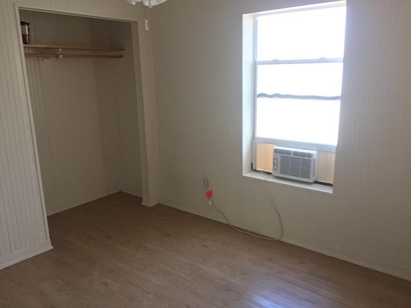 Great downtown location! Rent is $575 per month This apartment is rented with electric and water service for a required additional $50.00 per month. Your monthly payment for rent and all utilities will be $625 This unit has a shower only/no tub 2 window AC units. Kitchen living room combo, separate bedroom with full bathroom. Absolutely No Pets No smoking in apartment Application including criminal background check & proof of income required. First months rent and deposit required to move in. Owner pays for Electric & Water. One cat is okay.