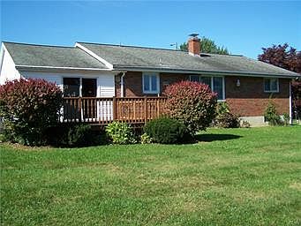 This 3 bedroom 1.5 bath brick ranch home located in an established neighborhood of Coopersburg Borough. Enter this home through covered porch into living room with brick fireplace thru dining room to kitchen with wall mounted oven, cook top, pantry, lots of cabinets. Main bedroom has own half bath, double closets. The 2nd and 3rd bedrooms are separated by the hall bath. Downstairs is finished area for added entertainment along with a shop area and bilco doors egress into back yard. The attached garage with inside access into the kitchen and outside to deck. Out back is a nice size yard for the kids, pets or entertaining, and a huge equipment/storage shed. Hardwood flooring is believed to be under the carpeted rooms. Living room fireplace appears to have a stainless steel liner running through it from basement. Wide paved driveway for plenty of off street parking. Public water & sewer. Convenient to 309, 78, 663, Allentown Rd. Close to Locust Valley Golf Course & the Coopersburg Diner.