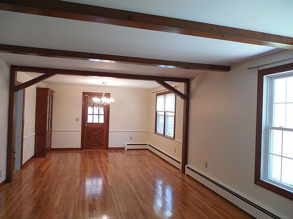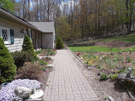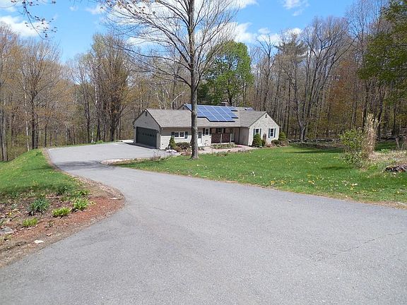 Beautifully situated ranch style home on over 1 1/4 acres of land with mature perennials ,paved walk ways and lots of privacy. This move in ready home offers 3 bedrooms and 2 1/2 baths, large formal living room with windows overlooking the wooded back yard, hardwood floors, and gas fireplace, eat in kitchen , finished lower level family room with wet bar and full bath. Recent updates include a Navien on demand hot water /boiler system, approximately 3 year old roof and solar panels for energy savings. In addition this home has a 2 car garage, screened in porch, central vac, security system, & replacement windows.