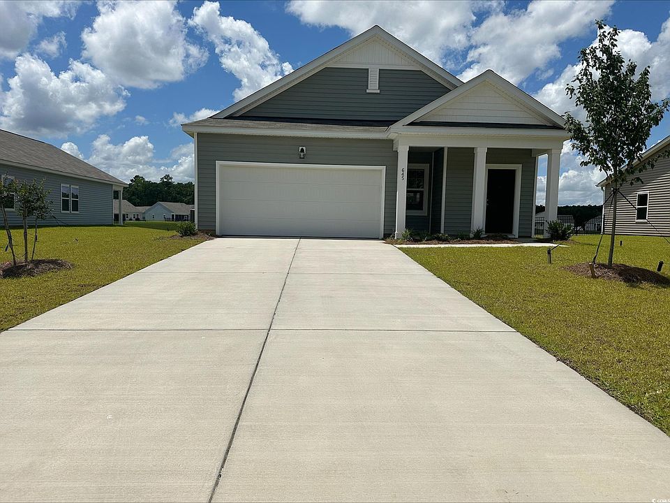 Pictures are of a completed sterling in the neighborhood, home will be ready for an April closing. This stunning 3 bedroom, 2 bathroom home is situated on a spacious lot overlooking a serene pond, offering a peaceful and picturesque setting. The interior of the home is equally impressive, featuring granite countertops and stainless steel appliances in the kitchen, adding a touch of elegance and modernity to the space. The open floor plan creates a seamless flow between the kitchen, dining area, and living room, making it ideal for both everyday living and entertaining. The bedrooms are well-appointed and provide ample space for relaxation and privacy. Just a short drive away from North Myrtle Beach, residents can easily access the sandy shores and vibrant beach community. Whether you're looking to soak up the sun, enjoy water sports, or explore the local shops and restaurants, this home offers the perfect blend of coastal living and modern comfort. Don't miss the opportunity to make this beautiful home your own and experience the best of both worlds - peaceful pond views and beachside living.