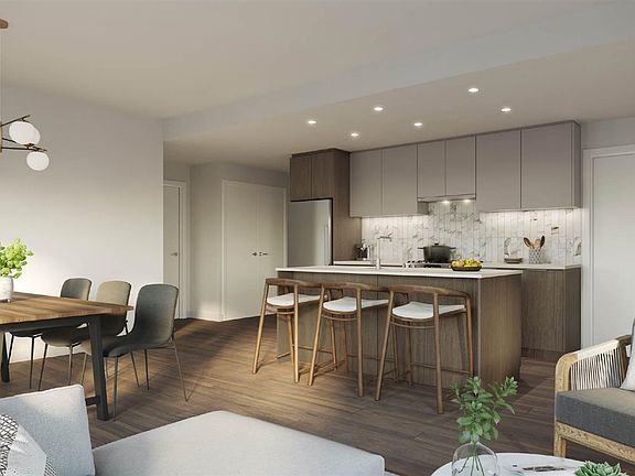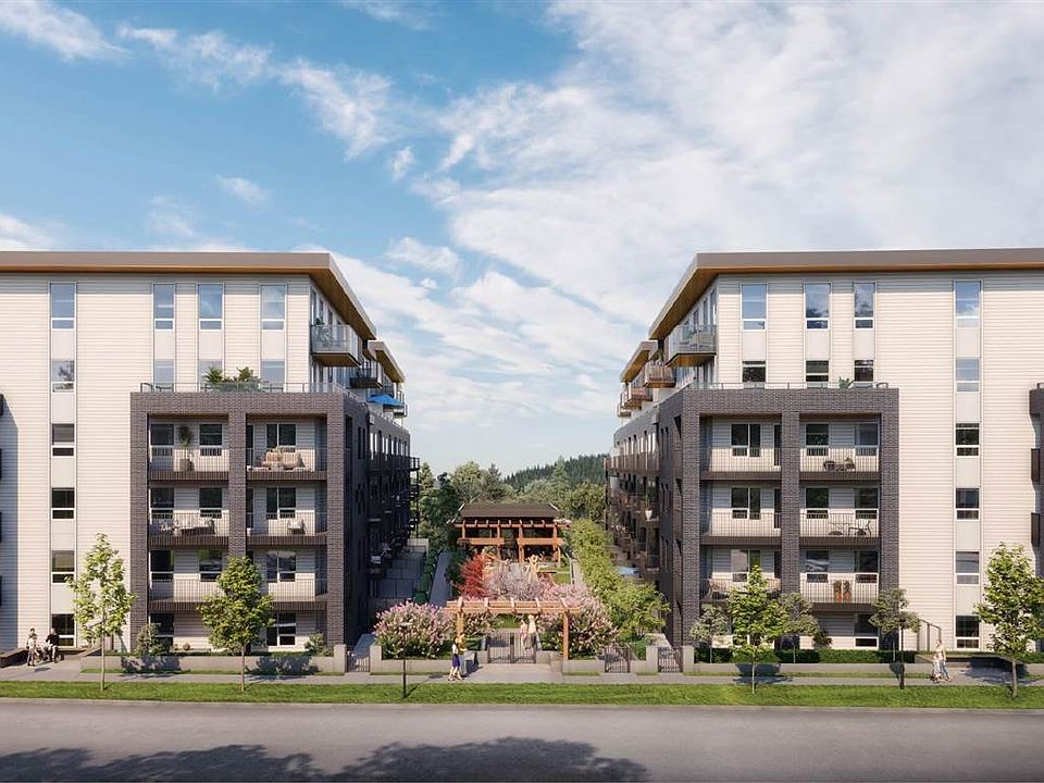 Welcome to Port&Mill; a block of well-crafted 1,2 and 3 bedroom condos in West Coquitlam by award-winning Streetside Developments. Our collection of homes are anchored by our central courtyard bringing a strong sense of togetherness to an already established neighborhood. Our amenities include a fitness room, fully equipped kitchen, and entertaining area that extends outdoors, to our garden lounge with outdoor kitchen and bbq's. This beautiful one bedroom +den home is located south-facing on the garden level with an expansive patio boasting over 200sqft. This home also offers over 12'5ft ceilings with extra window allowing sun to stream through into your bedroom and living room. Our Presentation Centre is now open every day except Fridays from 12-5 pm.