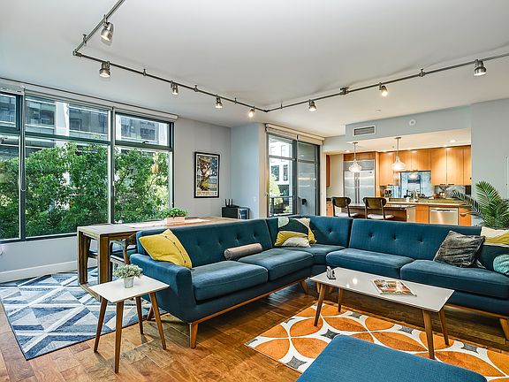 Fully furnished expansive light and bright 2 story property available for lease at Renaissance in the Marina downtown. Renaissance is considered one of the most desirable buildings in the zip code and this larger 2 story floorplan features more than 2000 sq ft of living space including 2 en suite bedrooms with a full third bathroom downstairs. Finishes include counters, stainless appliances, hard wood floors throughout, custom bathrooms and updated finishes throughout. Full-size laundry room and office/loft area with a murphy bed offers flexibilty. HOA includes on-site management and security. Prime location within the Marina and walking distance to Petco, Seaport Village, Gaslamp and Downtown and the surrounding areas prolific shopping and dining. One of the rare properties within Renaissance. Available now. HOA common areas are currently under construction including the lobby and pool areas. Scheduled completion for the pool is mid August and lobby September 2025. This property is available for a less than 1 year lease and is fully furnished. Tenants to pay all utilities and move in move out fees. $500 deposit directly to the HOA is refundable at move out. $150 for move in and move out fees all paid directly to the HOA.