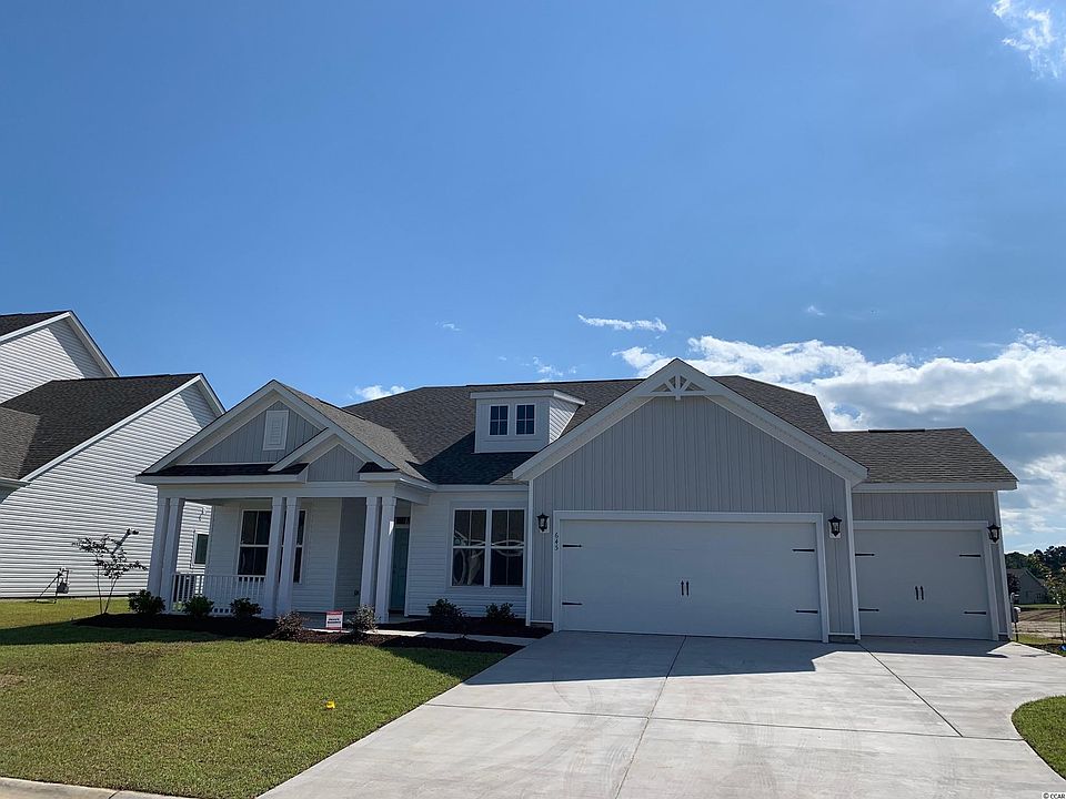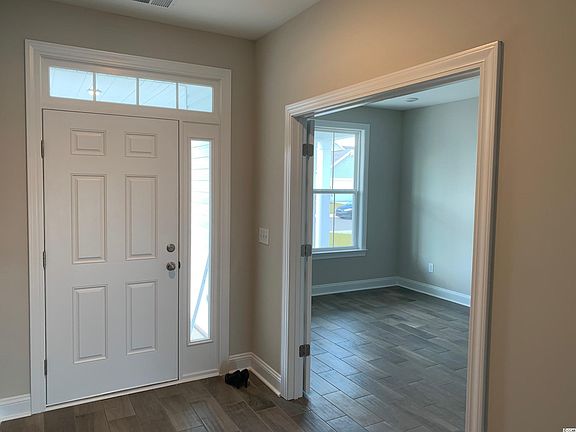 This Graham Coastal elevation is located on a gorgeous .3 acre waterfront lot. This lovely home boasts upgraded included features: 3-car garage, 3 bedrooms, 2 baths, a formal dining room, gallery, and a study. The foyer is illuminated by a side-lite and transom window. Level-3 Wood-Look tile creates a generous flow throughout. The elegant gourmet kitchen boasts a stainless steel decorative hood over the Whirlpool natural gas cook top. The kitchen also features quartz counter tops, a stainless steel Whirlpool wall oven and wall microwave, and dishwasher. The spacious kitchen island hosts a large stainless steel apron farm sink. Quartz counter tops were selected for all baths. The kitchen is open to the great room that features a large 12x8 sliding glass door and a marvelous vaulted ceiling. The generous primary bedroom features a bay window and double doors that lead into the primary bath. The over-sized primary bath hosts a Daltile Tile Walk-in Spa shower with a rain showerhead and wall showerhead, double vanity, and water closet. The primary walk-in closet opens to the large laundry room for easy access. Designer trim was added as a lovely accompaniment throughout. This home features Moen brushed nickel plumbing fixtures, a natural gas tankless Rinnai water heater, natural gas furnace, and natural gas cooktop. Belle Mer boasts a premier location less than 3 miles to the beach and amenities galore; pool, clubhouse, exercise room, and sidewalks throughout.