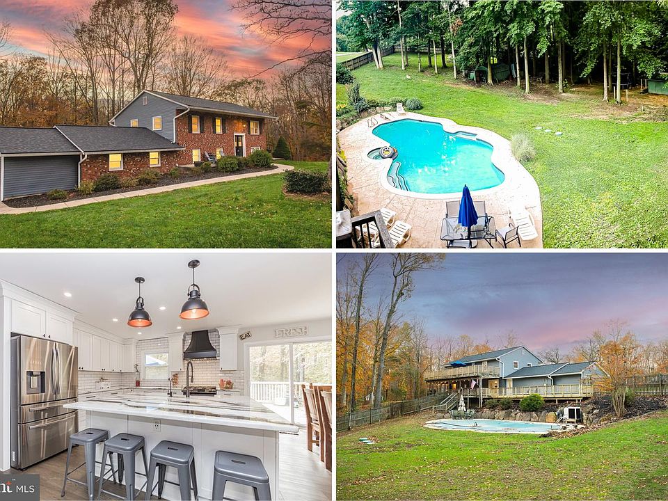 $10k Price Reduction by Motivated Seller! Semi Farm Living with close proximity to Annapolis. This updated 5 BR/3.5 FB brick-front home is situated on a 2.19 acre corner lot, backing to woods. Enjoy the serene privacy while lounging in the in-ground, heated saltwater pool. 3 Bedrooms on the Upper level and 2 Bedrooms on the Lower level. There is a Primary Bedroom on the Upper Level and also a Primary Bedroom on the Lower Level, which is accessible without steps. Lower Primary has a dressing room closet with loads of space. All 3 Full Baths and Half Bath have been updated with premium finishes and custom tilework. Renovated open concept kitchen with white cabinetry, large island with seating, granite countertops, tile backsplash, farmhouse sink, premium appliances and custom stove hood. Exit the kitchen to the top level deck, perfect for outdoor dining and entertaining. Lower level deck is an outdoor living space, accessible from the Primary Bedroom, rear entrance Mud-Room or office/game room. Plenty of space to work from home. Lower level storage room with convenient shelving. Large 2 car side-load attached garage. So many updates to list! LVP Flooring throughout. New Roof, ridge vent, insulation and 6" Leaf Guard gutters installed 2019. Tankless instant propane water heater. Premium water softener with Reverse Osmosis and UV filter. Updated PEX plumbing. New Lower deck.