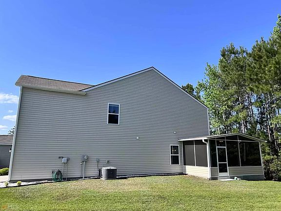 This 4-bedroom home is located in a quiet cul-de-sac! Perfect privacy. It features an oversized screened-in porch, with an uncovered patio perfect for grilling. Never worry about watering your lawn, this home has irrigation systems in the front and back of the property! All of the 4 spacious bedrooms are located upstairs. The master bedroom has a large soaking tub separated from the shower, perfect for relaxing! Enjoy your large open concept kitchen and living room, while also still having a formal dining area great for family dinners. Along with the many great features of this home, it backs up to a private golf course and walking distance to the community pool, as well as it being minutes away from amenities, schools, and in close proximity to HAAF & Ft. Stewart. The Renter will also have a washer, dryer, and a fridge on the property. No smoking allowed, Includes refrigerator, Washer, and Dryer