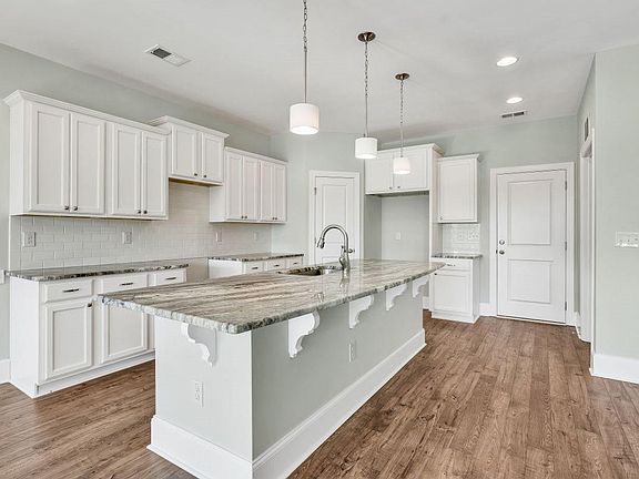 The Wrightsville 2 story floor plan This home is being built as a 3 or 4 bedroom with study, bonus room and 3 full baths. This home has the best of both worlds, tree privacy in the back yard and lake view and access in the front yard. The Wrightsville plan has low country style with cement fiber board exteriors & raised slab brick veneer foundation. Some standards included in this home are large front and rear covered porches, laminate 5" flooring throughout all 1st floor common areas, over sized tile walk-in master shower with seat. Natural gas water heater and gas heat. Maple 36" - 42" staggered height cabinets with crown molding. Granite kitchen counter tops, counter height kitchen island peninsula with granite overhang. Tray ceiling in master bedroom & great room, stainless appliances, brushed nickel lighting & lighting package. Raised bath vanities. Upgraded trim package including 7.25" baseboards throughout, cased windows & openings, crown in the foyer. Paver apron driveways, Fully landscaped, sodded & irrigated yard with gutters around entire home. Eco select energy program. TAEXX Built-in pest control system. Sentricon termite system. 2 - 10 warranty. Luxury options added to this home include a dining room and Master bedroom bay windows for lots of light. Upgraded stainless steel appliances with a gas range. French doors to the study. Optional window in family room. Single bowl SST sink. Various can lights. Gas line in kitchen. Upgraded counter tops in the kitchen and master bath. Upgraded cabinetry throughout. Upgraded back splash. Upgraded carpet in bedrooms. Oak tread stair case.Upgraded tile in all wet areas. Laundry room cabinets. Living in Indigo Bay you will be enthralled by sites & sounds of Nature. Centered around a 56-acre Lake is the backdrop to where you can enjoy kayaking, canoeing, paddle boating, fishing and so on. You will also enjoy walking through the neighborhood on our spacious 9' wide Recreation path. Amenity construction beginning soon for our 2-story Clubhouse Amenity Center with front & rear wrap around covered & screened porches, Community pool & boat dock. This Master Planned Community will be where you want to come home to. Great opportunity to take advantage of Introductory Prices, see agent for details. Actual pictures shown.