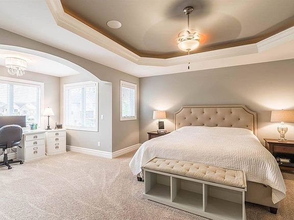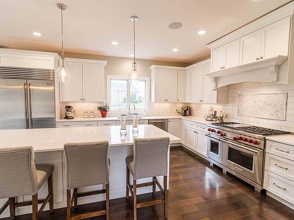 Nearly new executive home in mint condition in The Legend at Bergamont golf/waterpark gated community. True Chef's Kitchen with Sub-Zero/Wolf appliance package, 10'x4' quartz island, 6 burner + griddle stovetop & double oven, tile backsplash & walk-in Pantry. Master Suite - Sitting Room, jetted tub, custom tile shower & dual vanity. 2nd Master Suite upstairs with tile shower & a 3rd full bathroom with dual vanities. Other amenities include 5" plank solid hardwood floors, oversized trim package, tray ceilings, washer/dryer on 1st & 2nd floors, Ring security system, whole house audio, sprinkler system, 100% stone/stucco exterior, 19'x16' deck, side entry garage w/ 28' deep stalls, 9' tall doors & stairs to basement, multi-zone HVAC, 2-stage furnace & a framed basement awaiting your finishes.