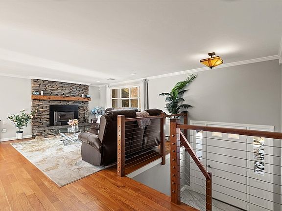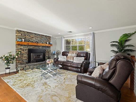 Discover this beautiful 3 bedroom home that offers the perfect blend of comfort and style including 2 full baths. This residence boasts an inviting open floor plan ideal for entertaining. The large living room is enhanced by a stunning stone front fireplace, creating a warm and welcoming atmosphere. Enjoy the elegance of hardwood flooring throughout, and step out onto the balcony from the master bedroom for a serene retreat.The kitchen is complete with Quartz countertops and stainless steel appliances. Enjoy seamless indoor-outdoor living with a large deck that overlooks large rear yard and in-ground pool, complete with a pool house. Surrounded by mature trees, the fenced pool area creates your very own private oasis.The partially finished basement features a cozy family room with an additional stone front fireplace. Plenty of off-street parking, this home is designed for both functionality and ease.Located close to shopping, restaurants and highways.