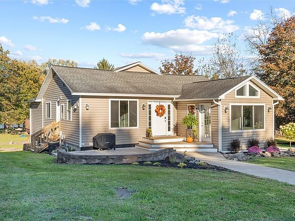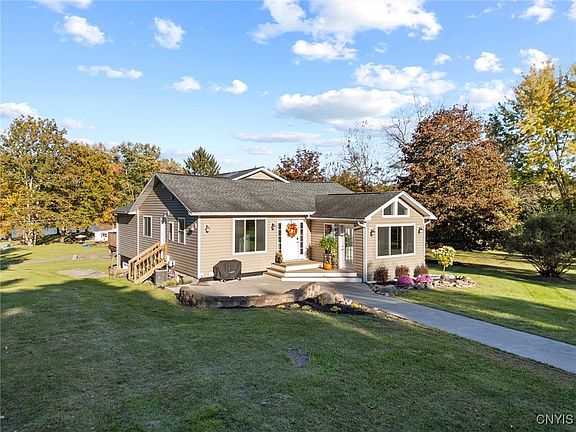 Discover a contemporary ranch that redefines modern living. This spacious 2,596 square foot home boasts 4 bedrooms and 2.5 bathrooms, offering ample room for family and guests. The property's walkout basement, provides seamless indoor-outdoor living and additional living space. Recent upgrades, include a hot water heater, furnace, and appliances that ensure efficiency and comfort. The primary bathroom has been fully remodeled, while the main floor sports a fresh coat of paint. Car enthusiasts will love the four-car detached heated garage, perfect for housing your prized vehicles or creating a workshop haven. Inside, cathedral ceilings create an airy ambiance, while the dual kitchens-one on the main floor and another in the basement-offer versatility for entertaining. House comes with 60' of waterfront, with the option to purchase an adjacent 60' waterfront lot for additional cost. Cross Lake is prized for stellar fishing & bold sunsets. Explore from this property connecting to the NYS canal system, extends to a few Finger Lakes, the St. Lawrence River, and even the Atlantic Ocean, should you feel adventurous, from your front yard!
