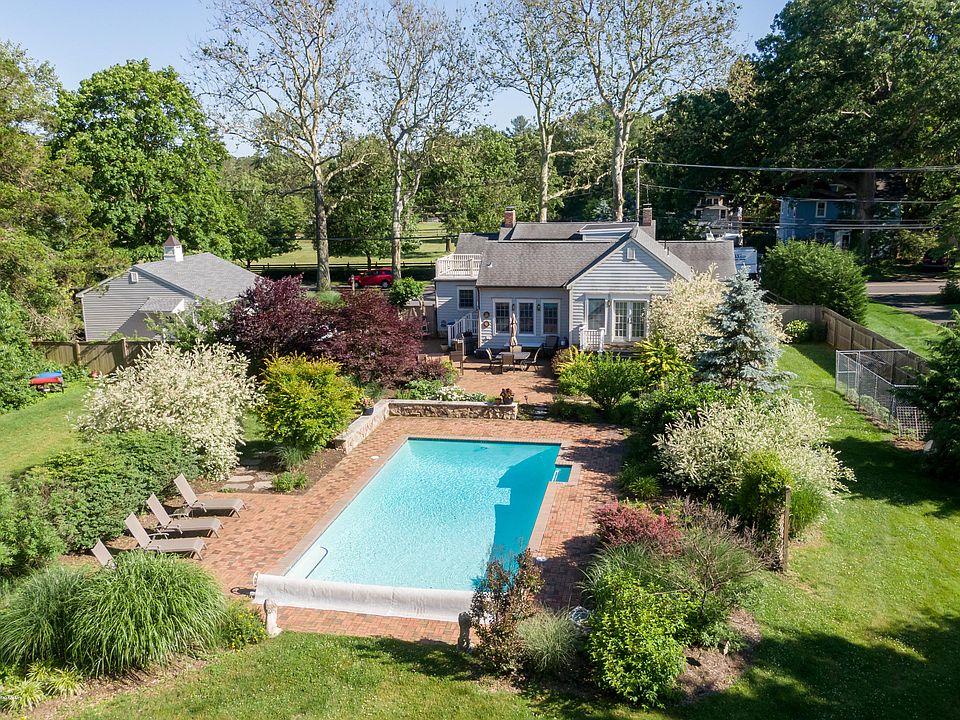 Sophistication and luxury. This Farmhouse style home enjoys an open floor plan that is perfect for any season. This kitchen which flows into the dining room can easily service the opportunity to host cozy winter holidays in your spacious living room flanked by 2 hearthlike fireplaces. The summer events are just as enjoyable with your private parklike deep yard with inground pool. Each of the 3 bedrooms can serve as its own master en suite. However, the first floor master has 4 separate closet areas. Completely new build 2+oversized garage with extra storage above completed in 2015. Oil heat completely converted to gas in 2014 including gas cooking. Hardwood floors throughout. Close to beaches, restaurants, shopping and NYC commuting. All room sizes and measurements approximate.