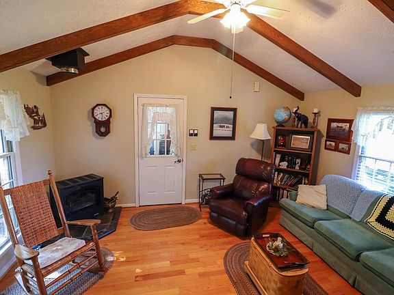 This beautiful country ranch home is settled perfectly in the tranquility of the country while being minutes from the Town of Floyd. This property provides character with the brick entry way to the home with the paved driveway. The home offers spacious living with 3 bedrooms, 2.5 baths, a dining room, living room, kitchen, laundry and sun room. The covered front deck is the optimal place to enjoy the beautiful mountain view and sunrise/sunset. The spacious back deck and backyard are wonderful areas for entertaining family and friends. The property offers a storage building with electricity as well as a two car garage. The home is settled on approximately 3.5 acres of which some are wooded. If you are looking for a home in a quaint country setting this is for you!