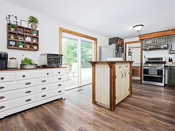 Brimming w/charm & curb appeal, fall in love from your first steps into the home. Whether you enter the home from the front door into the enclosed, heated front porch or into the home from the side door from the driveway with the updated mudroom entranceway! Stepping inside brings you the open floorplan w/living, dining, & kitchen combo rarely found so beautifully done! This kitchen, completely renovated, will take your breath away! Island and appliances stay! Just off the kitchen is the perfect flex room for an additional 1st floor bedroom/office/playroom. First floor laundry and full bathroom too! Upstairs you will find 3 more good sized bedrooms! Finishing the second floor is the refreshed second full bathroom with new fixtures & touches! Just when you thought this home already had it all, walk out of the kitchen through the glass sliding door onto the back deck to above ground pool! Two car detached garage/ outbuilding, plenty of room for 2 vehicles, toys and storage. Backyard has plenty of space to roam on just over a half-acre. Just minutes to NYS Thruway. Pembroke Central School District!