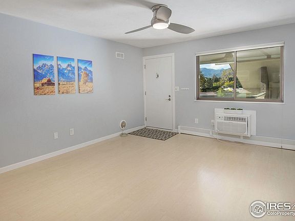Updated Top-Floor Condo is Priced to Sell! Enjoy stunning, unobstructed Flatirons views from this top-floor, southwest-facing condo in the desirable Chateau Village West community. Just minutes from CU Boulder, trails, shopping, public transit, and bike paths, this move-in ready unit offers the best of Boulder living. The open layout features updated flooring, lighting, and kitchen cabinets and appliances, plus crisp paint and a new bedroom fan and A/C unit. The spacious bedroom includes mountain views and a walk-in closet with extra storage. A full bath with vanity storage, low utility costs (electric only), and no interior traffic noise enhance daily comfort. Community amenities include a swimming pool, laundry facilities, assigned storage, two parking passes, and ample guest parking. HOA dues cover heat, water, trash, and snow removal. Cats welcome; no dogs permitted. Don't miss this opportunity to own a well-maintained, top-floor unit in a prime Boulder location.