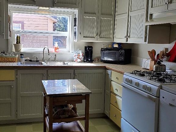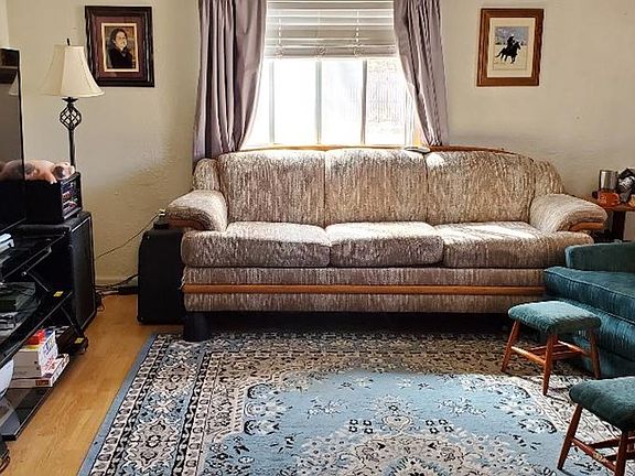 This charming 2 bedroom 1 bath home has large living room which is currently split to incorporate a 3rd bedroom space. This home has an inviting eat in kitchen. large deck for outdoor entertaining, fenced in yard, and sprinklers.
