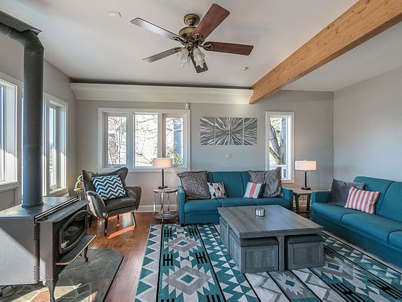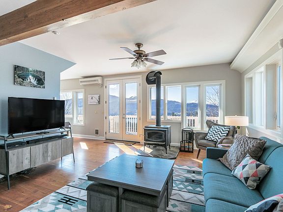 Welcome to Grandview Getaway, a charming 3-bedroom, 3.5-bathroom house located just blocks away from the vibrant Downtown White Salmon. This inviting home offers stunning views of the Columbia River and Mt. Hood from every room, ensuring you feel at home amidst the breathtaking scenery. With two bedrooms on the upper level, a third bedroom on the ground level, and two foldout couches in the living room, this house comfortably accommodates up to eight guests. The main floor features an open and spacious living area, perfect for a group of travelers. Relax in the large living room with ample seating, a Smart TV, and a cozy wood stove. The well-appointed kitchen provides plenty of space for meal preparation, complete with a coffee bar and a formal dining table that seats up to eight. The upper-level bedrooms offer privacy and include a king-sized bed under a skylight and a queen-sized bed, both with private bathrooms and access to a shared deck with spectacular views. The bottom floor includes a homey suite with a kitchenette, a small dining table, and a third bedroom with a queen-sized bed and access to the yard with a spacious hot tub. This pet-friendly property allows up to two pets with a nightly pet fee charged per pet. Enjoy the convenience of 2G and 5G Wi-Fi, Bluetooth speakers, wireless charging stations, and USB ports in lamps for simultaneous device charging. Air conditioning is available for use during the warmer months. Grandview Getaway is conveniently located near Downtown Hood River and surrounded by nature spots, offering easy access to a grocery store, restaurants, shops, theaters, and kid's activities. Hiking and mountain biking trails are just blocks away, making it an ideal location for outdoor enthusiasts. A separate rental agreement will need to be electronically signed before your stay. The property is pet-friendly with a nightly fee per pet.