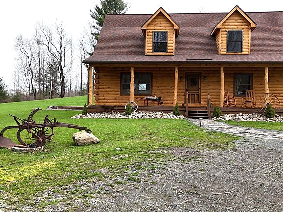 Escape to your secluded Log Cabin retreat, minutes from Tom Hannock Reservoir, yet a world away. Serenely nestled among trees, this 3-bedroom haven is just 20 mins to Saratoga Lake and 25 mins to Clifton Park. Step inside to find warmth and character in every corner, from the inviting great room with soaring cathedral ceilings to the luxurious bathrooms adorned with ceramic and stone. The kitchen, boasting granite counters, is a culinary delight. Relax on the front porch or expand your living space onto the expansive deck, all while enjoying the tranquil surroundings. With generously sized bedrooms, ample storage, and potential downstairs for a family room or workshop, this home caters to both comfort and practicality. And with 7 sprawling acres, your expansion dreams are limitless.