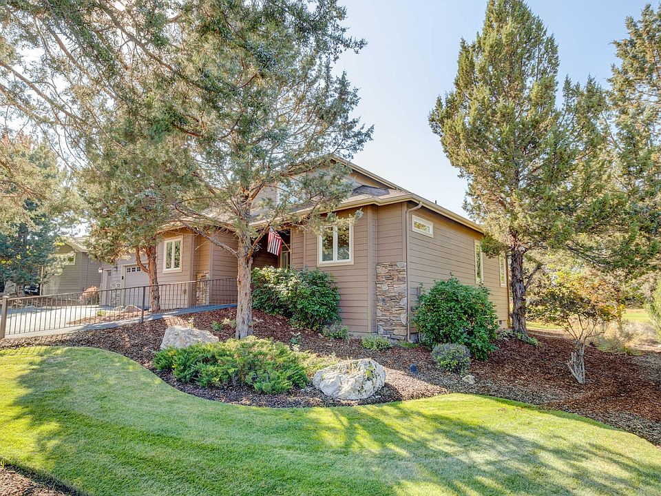 Welcome to this Fabulous Eagle Crest custom, one-owner home that lives like a single-level home with an inviting open floor plan featuring golf course and peek-a-boo mountain views. You'll be welcomed by a tall, 2-story foyer with views straight ahead to the golf course. The main floor hosts spacious entertaining spaces along with the primary suite, laundry room, and a tranquil den/office with built-in book shelves. Retreat to the peaceful, pergola-covered paver patio to enjoy the fresh air and natural scenery. The upstairs is an ideal guest space with 2 bedrooms, a full bath and great room with a small deck offering peek-a-boo mountain views. You'll find value in the 3-car garage, central vac with kitchen sweep, and 2 water heaters. Eagle Crest is home to three 18-hole golf courses, three rec centers, a day spa and miles of paved trails. Enjoy indoor/outdoor swimming pools, tennis, pickle ball and basketball courts.