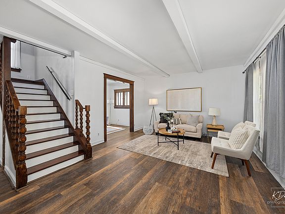 MULTILPLE OFFERS HAVE BEEN RECEIVED. THE HIGHEST AND BEST OFFERS ARE DUE AT 7:30 PM ON SUNDAY MAY 5TH. Step into timeless charm at 645 Oak Avenue, a beautifully preserved residence located in the heart of the vibrant Tanner Historic District of Aurora, Illinois. This home extends over 1,619 square feet, featuring 3 bedrooms all with new carpet and 2 bathrooms, making it perfect for both comfortable living and stylish entertaining. Upon entering, you are greeted by a warm and inviting living room filled with abundant natural light and gleaming hardwood floors, providing a perfect setting for relaxation and social gatherings. The adjacent dining area is ideal for hosting dinner parties and seamlessly flows into the kitchen. The kitchen is well-equipped for culinary adventures, featuring ample cabinetry and a cozy eat-in area where you can enjoy morning coffee or casual meals. Upstairs, the spacious master bedroom offers a peaceful retreat with its generous size and large windows. Two additional bedrooms offer flexibility for family, guests, or a home office, each served by a well-appointed full bathroom. One of the standout features of this lovely home is the huge covered front porch-a perfect spot for relaxing with a book or enjoying a cup of tea, while taking in the neighborhood views and engaging with community life. The expansive backyard is another true highlight. Perfect for summer barbecues and outdoor entertainment. Located in the Tanner Historic District, 645 Oak Avenue is just minutes away from excellent schools, shopping centers, and dining options, with easy access to major highways and public transportation, making commuting a breeze. This delightful house offers a blend of comfort, convenience, and charm, positioned in a historically rich and friendly neighborhood. Don't miss the opportunity to make this house your home. Significant upgrades include a new roof and large gutters installed in 2019, carpet (2024), kitchen countertop (2024), bathroom countertop (2024), and paint (2024). Seller is offering a Home Warranty!