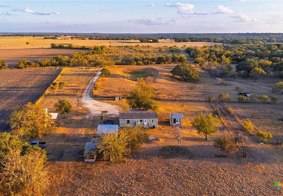 Escape to this private 17-acre farm just minutes from Lockhart, where peaceful country living meets everyday convenience. The property features a well-maintained manufactured home with 3 bedrooms and 2 bathrooms. Inside, the open-concept layout creates a spacious and welcoming atmosphere, highlighted by a kitchen with white cabinetry and a generous pantry. The laundry room, located just off the kitchen, provides easy access to the backyard for added functionality. A covered front deck offers a beautiful vantage point to take in the land and unwind at the end of the day. A separate guest house adds incredible versatility, featuring vaulted ceilings, full bathroom, laminate flooring, and a metal roof. This charming space can be used for rental income, multi-generational living, a home office, or hosting guests. Additional property features include a concrete tornado/safety bunker and a large metal workshop with built-in storage—ideal for hay, equipment, or livestock shelter. The land is fully fenced and cross-fenced, dotted with mature native trees, and includes a deep 12-foot pond (currently dry and waiting for the next rain) for livestock as well as a separate storage building near the main home. With a septic system and well, the property offers the option for more self-sufficient living. Toward the back, several acres of dense forest provide opportunities to attract wildlife, carve out scenic walking trails, or clear additional space for livestock or farming. This turnkey rural property combines privacy, amenities, and natural beauty in one package. All this is just minutes from Lockhart and an easy drive to Austin, Bastrop, and San Marcos.