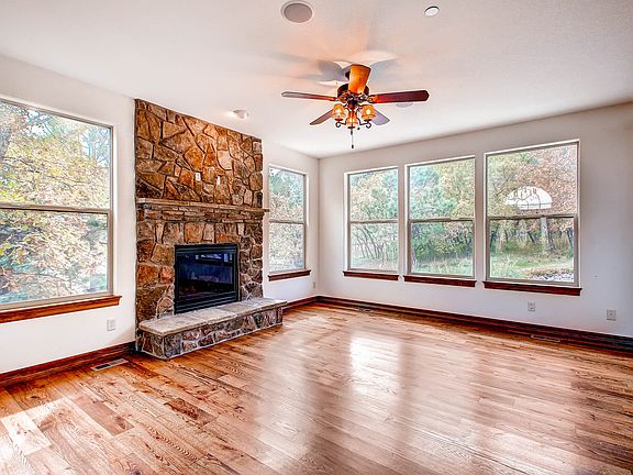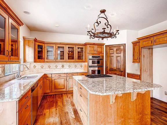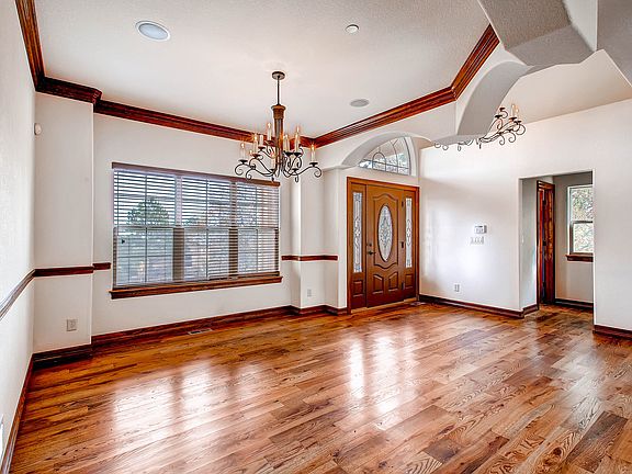 Beautiful stone and stucco 2-story home conveys Colorado living at its best! Nestled at the very foot of Cheyenne Mountain in the Spires Broadmoor on a private 1/2 -acre lot. Gorgeous architecture blends effortlessly with natural landscaping. Handsome, solid wood flooring throughout the main level. Inviting living room features an open concept, striking gas fireplace, and walls of windows. The dining room has dramatic ceiling details and a large picture window overlooking the city. A fabulous Kitchen/living area with extensive custom cabinetry & granite counter space, pantry and top of the line appliances including new double ovens. People will sit and talk by the fire in the hearth room while dinner is cooking. The nook is surrounded in glass on 3 sides where you can Walk-out to the backyard onto a large, low maintenance concrete patio to enjoy the breathtaking view & tranquil sound from the rock water feature. The impressive Master bedroom suite has a sitting area by the stone fireplace which is also enjoyed in the jetted-bathtub in the adjoining 5-piece bath! Three additional bedrooms on the upper level with walk-in closets -1 en-suite bath, the other 2 share a Jack n Jill bath. The finished basement features a spacious family room with the 4th gas log fireplace & large wet bar for entertaining. Also on this level are 2 more bedrooms with a full bath and an unfinished, insulated storage area. The 3 car attached oversized garage has built in storage. Fully landscaped. Two new hot water heaters plus circulation pump. A magnificent home in District 12 with majestic views of city lights below and towering mountains above!