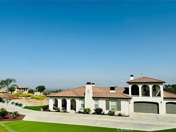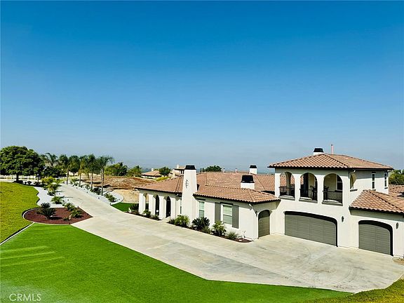Expansive single-story multi generational home including 1 bedroom Junior ADU/Casita on a second level and detached studio ADU/Guest House. This corner lot home is located on over 5 ACRES that include panoramic views! Drive up to drought tolerant landscape including rock/artificial turf/water conserving ground cover with a private driveway equipped to handle RVs/Boats/Cars and more. 4 garage parking spots with EV charger and 220 volts (2 single car garages and 1 two car garage). Property has approximately 4,435sqft of living space, including 6 bedrooms/5.5 bathrooms/office with attached bathroom (6th bedroom)/wine cellar-dry bar/dining room/butler’s pantry/living room/family room/kitchen/breakfast nook/laundry room/master retreat-suite/jack and jill bathroom/courtyard and so much more. Gourmet kitchen includes granite slab counter tops, custom cabinets, wall mounted pot filler, stainless steel chef quality appliances, breakfast counter. Kitchen opens to family room equipped with built in surround sound, media-built ins, French doors leading to a secluded inner courtyard with fireplace, perfect for entertaining! Another pair of French doors leads out to a large concrete patio with views, views, views! Master ensuite with two walk-in closets, a retreat includes a dual sided fireplace, master bathroom with walk-in shower, his and hers double sinks, vanity area and jetted soaking tub. 4 fireplaces located in family room, living room, master suite/retreat and courtyard. Ceiling fans in all rooms. Casita is located on the 2nd story with a wrap around balcony overlooking the hills and can be accessed privately through courtyard and separate single car garage. Casita includes living room/kitchen with all appliances/study nook/bedroom/bathroom. Property also includes detached Guest house studio and attached bathroom. Energy efficient lighting/fixtures/appliances/landscape and more. Located in the desirable Riverside Unified School District. No HOA. Close to shopping/schools/entertainment/freeway access. Must see to appreciate!!