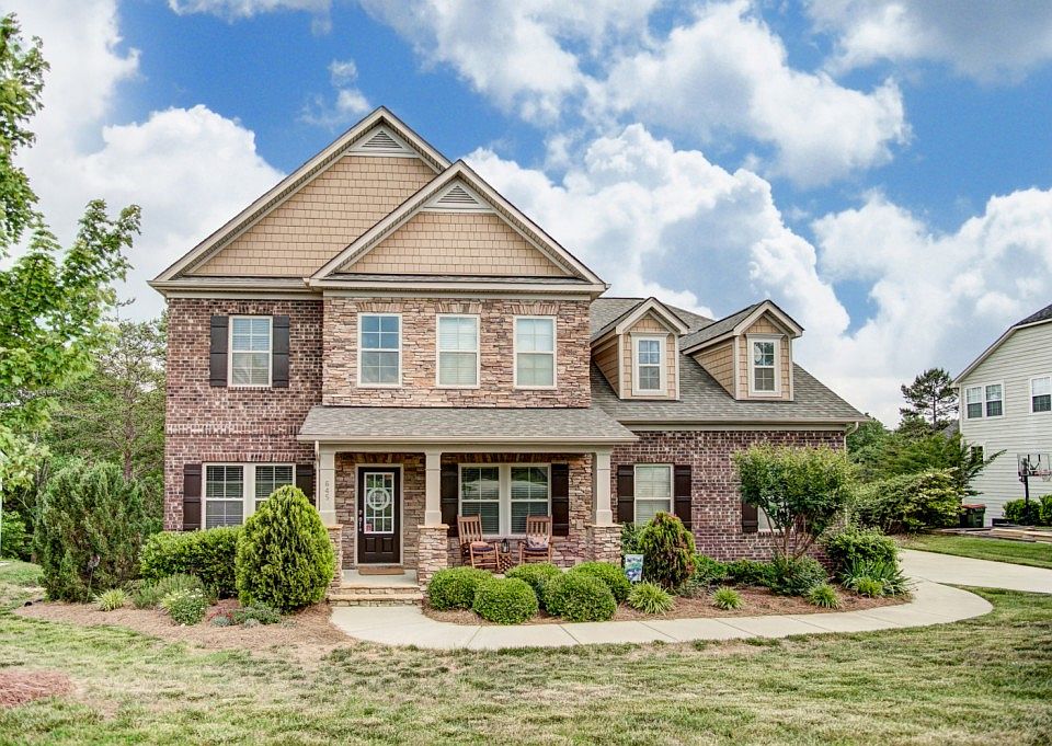 Beautiful two story basement home in Serenity Point. Rocking chair front porch to welcome family and friends. Two story entry opens to pretty formal dining room w wainscoting and tray ceiling. Convenient study w french doors and closet. Two story great room, large windows and gas log fireplace. Chef's kitchen w Granite counters, stainless steel appliances and walk in pantry. Spacious master suite on main w a large master bath featuring a garden tub and glass enclosed shower. Three secondary bedrooms along w large bonus on upper level. LARGE UNFINISHED (1800 sq ft HEATED/COOLED)basement. Basement is plumbed for a bath, has wall framing up, ready for finishing. Beautifully terraced .70 acre backyard w 2 decks & paver patio around a custom fire pit. Plenty of room for entertainment and play, yard is terraced to a flat grassy area and backs to beautiful woods. Don't miss the extended driveway for parking convenience. Cul-de-sac street, easy access to shopping, Fort Mill Schools.UNFINISHED BASEMENT IS HEATED AND COOLED, WALLS ARE FRAMED, PLUMBED FOR BATH