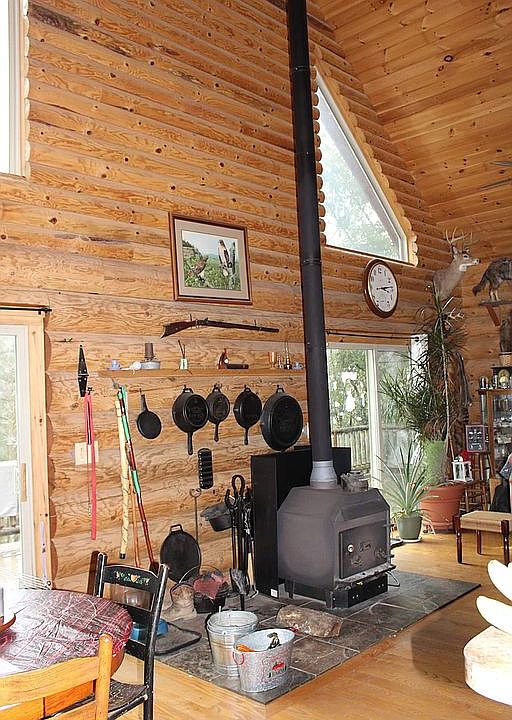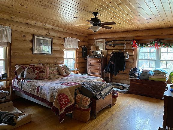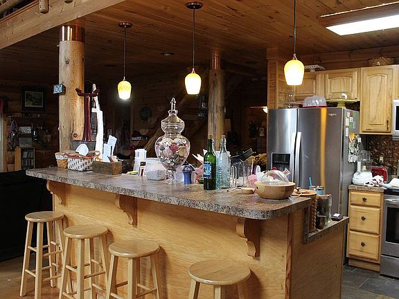 LENDER AVAILABLE! Gorgeous log home made of 12” red pine logs from upper Michigan! Situated on three 1-acre lots in Peaceful Valley. Lot 4 has a three stall barn with lofts plus extra hay storage. A chicken coop is attached on the back. Lot 8 has a beautiful overhang that can be viewed from the spacious master bedroom. 14 steps up to the main porch which is all constructed of 12” logs. All logs have been maintained yearly by the homeowner. Upon entry, you will view the open floor plan. Living and dining room are combined. There is a large wood stove in the center that could heat the entire home. The house has 4” ash hardwood flooring. All wet areas have slate. The kitchen is equipped with a Bosch dishwasher, whirlpool refrigerator, microwave and stove. Hickory cabinets. All logs inside are coated with a water based polyurethane so it’s not confining and dark. An open master bedroom with 2 single windows and a double window to view the overhang. The master bath has a walk in shower with two shower heads and seat all made of slate. A claw foot tub with TV. An antique dresser made into a vanity with vessel sink. Upstairs are two bedrooms and a full bath. There is a loft that could be a game room or another bedroom for guests. The house has a surveillance system and ADT. It is 5 minutes to Hollerwood ATV Park. 10 minutes to climbing attractions and Natural Bridge. Will only be 10 minutes from NEW RESORT COMING SOON!