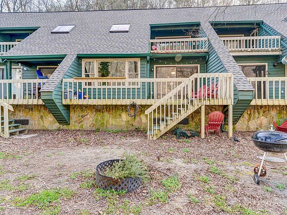 RIVERFRONT TOWNHOME! Check out this townhome just moments from Downtown and from East Ellijay. Featuring Hardwood floors, living room w/ fireplace. Kitchen w/ oak cabinets and SS appliances. Back deck just steps from the Cartecay river. Swift rapids for the sound, yet calm enough to play in. Bedrooms located upstairs for privacy, upper deck included. POA includes the flood insurance, and all maintenance. Brand new roofs and A/C units just installed, new paint approved for the upcoming weeks. Common area great for picnic or party. Unit would be fantastic on a Vacation Rental Program! Get this affordable river home today! (New paint will be gray, NOT green)