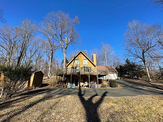Cozy up in Nature! This A-Frame in Albemarle County is only 3 miles to Pantops, 10mins to downtown Cville, the hospital and 64. Situated on just over 2 acres, this home has 2 garden sheds, a fire pit spot surrounded by rocks, large landscaping boulders and numerous flowering shrubs! (Blooms Spring - Fall). Large wrap around deck with plenty of space to enjoy the sounds of nature! Upon entering, you'll notice the open floor plan and cathedral ceilings - the living room and kitchen flood with natural day light! Finished basement offers many possibilities, it is currently set up as an in-law style apartment, complete with kitchenette. Detached garage is HUGE! Large paved driveway and many mature trees surround the property.