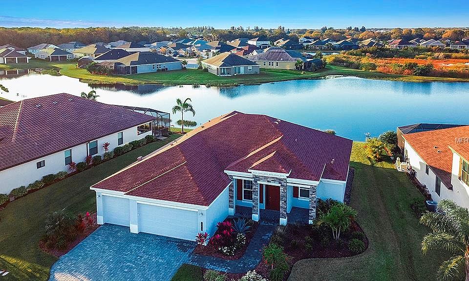 This beautifully detailed home is sure to impress the moment you walk through the doors. Catch your breath with direct long views of the sparkling water. Newly constructed Sam Rodgers premier luxury 4 bedroom, 3 bath home with 2,733 sf of exceptional living. This popular Magnolia floor plan was built for entertaining with a large formal dining room and chef-inspired kitchen. Great room flows to outdoor living thru sliding glass doors to the paver lanai. Your views will always be protected with the preserve across the way. A cozy bonus room with water views provides additional living space. Gourmet dream kitchen is the heart of the home featuring granite countertops, stainless appliances, gas cooking, designer subway tile, and distinctive 42" kitchen cabinetry with a beautiful washed finish. You will see why this is the perfect home for entertaining family and friends. The master suite features private access to the lanai and views of the sparkling water. Luxury finishes in the owners' bath will pamper you with granite countertops, his and her vanity sinks, Roman shower, and dual walk-in closets. This is a premium lot with a stack stone entry, mature Florida landscaping, paver brick drive and walkway, custom lighting and ceiling fans, porcelain tile flooring throughout, window treatments, large laundry room with utility sink, and three-car garage. Be prepared to simply say "WOW!" Greyhawk Landing is a secure, 24 hour gated community celebrated for its warm neighborhood atmosphere and grand amenities.