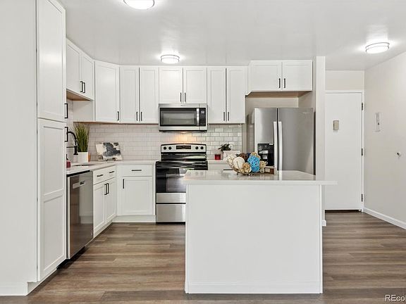 Beautiful Remodeled 1200 sf condo in Windsor Gardens! 2 bedrooms, 2 bathrooms, 1 car detached garage w/opener. This condo overlooks a large park-like courtyard- faces south receiving fresh sunlight. Kitchen w/white shaker soft close cabinets and bonus pantry, quartz counters, tile backsplash, separate island, and new stainless appliance package. Bathrooms remodeled with new tile, tall vanities, quartz counters, and all new fixtures. Primary bedroom w/en-suite 3/4 bathroom and large walk-in closet. 2nd bedroom w/spacious closet. Vinyl flooring thru-out main living area/kitchen, carpet in bedrooms. New paint, baseboards, doors, hardware, lighting...lanai w/screens, vinyl slider door included! Bonus storage closet on same floor. Seller willing to negotiate replacement of the 2 wall ac units with accepted offer! Building is close walking distance to highline canal and Windsor West walking trail. **Windsor Gardens is Colorado's Largest Age 55+ Active Adult Living Condo Community. Did you know? Monthly HOA Dues include annual property taxes! And heat, water, sewer, trash, round-the-clock patrolling community responders, full time onsite association management, grounds/building maintenance, and activities department. Enjoy clubhouse amenities such as fitness center, indoor/outdoor pools, hot tub, sauna, billiards, library, craft rooms for ceramics, sewing, woodworking, and 9 hole par 3 golf course and onsite restaurant both open to the public. Stay engaged with a wide array of activities, clubs, and events scheduled every month. Additional features include garden plot program, private walking trail and nature preserve, and RV/Boat storage. The Highline Canal runs full length along south side of the complex. RTD Bus Stops located thru-out the community. FHA/VA approved. Close to restaurants, stores, shopping…Minutes to Lowry, Hwy 225, Cherry Creek…Easy access to DIA and downtown. Come see for yourself what Windsor Gardens has to offer.©2021**