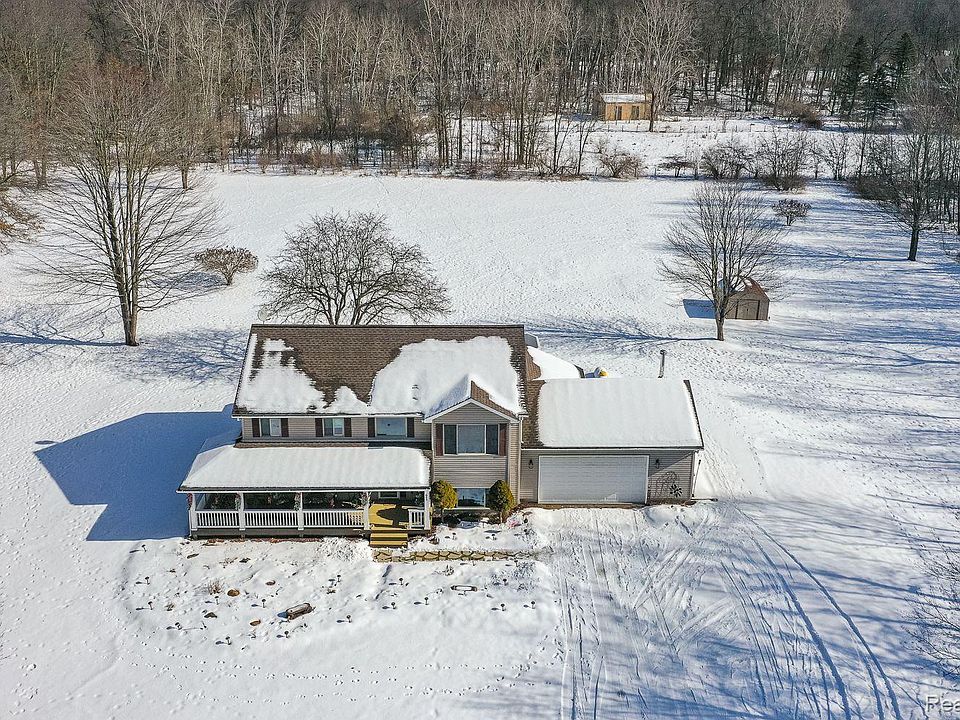 Discover the perfect blend of charm and serenity in this well-maintained home, nestled on a picturesque 5-acre lot teeming with wildlife. From the inviting wrap-around porch to the sprawling, private grounds, this property offers a true escape into nature. Step inside to an open and airy floor plan featuring vaulted ceilings and beautiful wood floors. The kitchen is a delight, boasting an island with seating, a pantry, and newer stainless steel appliances (2021). The spacious living room and open dining area create an ideal space for entertaining or relaxing. Retreat to the attractive primary suite, complete with a private balcony, two walk-in closets, and a lovely en-suite bath featuring a double vanity. A convenient powder room completes the main level. The lower level impresses with soaring 10-ft. ceilings, garage access, a huge rec space, an office or hobby room, two spacious bedrooms, and a full bath. Outside, the backyard is a haven of peace and beauty. Enjoy outdoor dining or evening cocktails on the two-tier deck while taking in the sights and sounds of nature. The oversized, insulated two-car garage with 10-ft. doors offers ample space, including a large storage closet. A wood stove once heated the home but has been removed in recent years. With a newer roof (2014 with a transferable warranty) and an unbeatable setting, this secluded paradise offers privacy and tranquility at its finest. Don’t miss out—schedule your showing today! See the 3D tour for a virtual walk through!