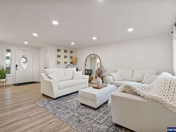 Situated in this desirable Mt. Angel neighborhood and backing up to an open field, this spacious Ranch boasts a completely renewed interior, with nearly all interior finishes updated in 2020. Custom Scandinavian style kitchen cabinets, quartz counters and LVP flooring. The home also features a 4th room or entertainment space w/ fireplace. New windows and paint in 2020. Seller is Lic. Broker.