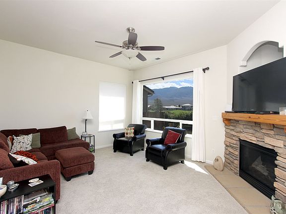 Breath Taking Views! Located on the 12th tee this 2417sf home has it all! Fully landscaped front and back with a large paver patio area to enjoy the stunning mountain, valley and golf course views. The spacious 2417sf home has a large master on one side of the home and the other 2 bedrooms and bath on the opposite side, , den, family room with gas fireplace, large formal dining and living area.The Kitchen is open to the great room and has hard wood floor, granite counters, breakfast bar, breakfast nook,