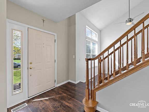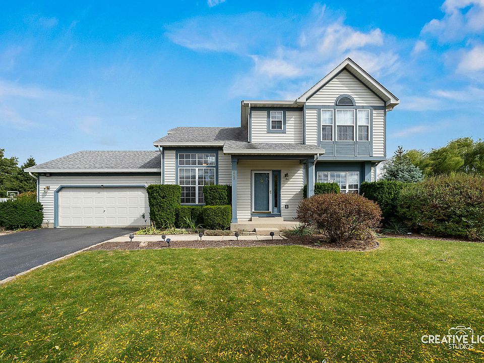 Bright and Sunny! Well located and Situated on a Lovely, Private and Spacious lot in Heritage of Oswego. This 4 bedroom home features 9ft ceilings on the first floor, White trim package, Open Kitchen to family room concept, Good counter space in kitchen with lots of cabinets, casual Dining area with Patio door access to Deck, Brick Fireplace, Stainless Refrigerator , dishwasher, microwave, Main floor den for remote working, Vaulted Dining Room or Flex Room. New flooring, 2nd floor offers 4 generously sized bedrooms, including Large Master bedroom with private Master bath, Finished basement area provides added Recreational space or workout room. Enjoy the Great outdoor living space in this private, lushly landscaped yard with huge deck, exterior equipment/lawn building, Koi pond, Big 2 car garage, Basement rough-in. Nice floor plan offering flexible living spaces. Great access to Route 59 train station, 2 minutes to Shopping and Dining. Oswego School District #308.