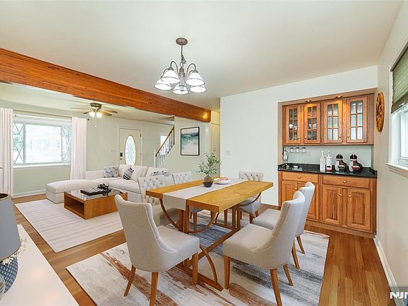 HIGHEST & BEST TUES 11/11 by 6PM. Get ready to FALL IN LOVE with this stunning 3 Bedroom / 2 Full Bath home located in the sought after town of Maywood. Upon entering, you'll be greeted to an open concept floor plan that balances style, flow, & practicality. Bathed in natural light from the bay windows, the Living Room showcases rich hardwood floors that transition seamlessly into the banquet-sized Dining Room, enhanced by a custom built-in Butler's Pantry. Next, imagine preparing your favorite dish in the Modern Eat in Kitchen while your guests enjoy a glass of wine out on the deck. The floor is made complete with a first floor Bedroom, Pantry & updated Full Bath. Upstairs, you'll find 2 generously sized Bedrooms with ample closet space. The Basement provides a Rec Room, Home Office, Full Bath, Laundry Room, & additional storage. The property sits on a tree-lined side street & offers a fully fenced backyard with a built-in sprinkler system & an oversized shed. Appreciate all that living in Maywood affords you: close proximity to top-rated schools, parks, restaurants, shopping, & an EZ commute to NYC.