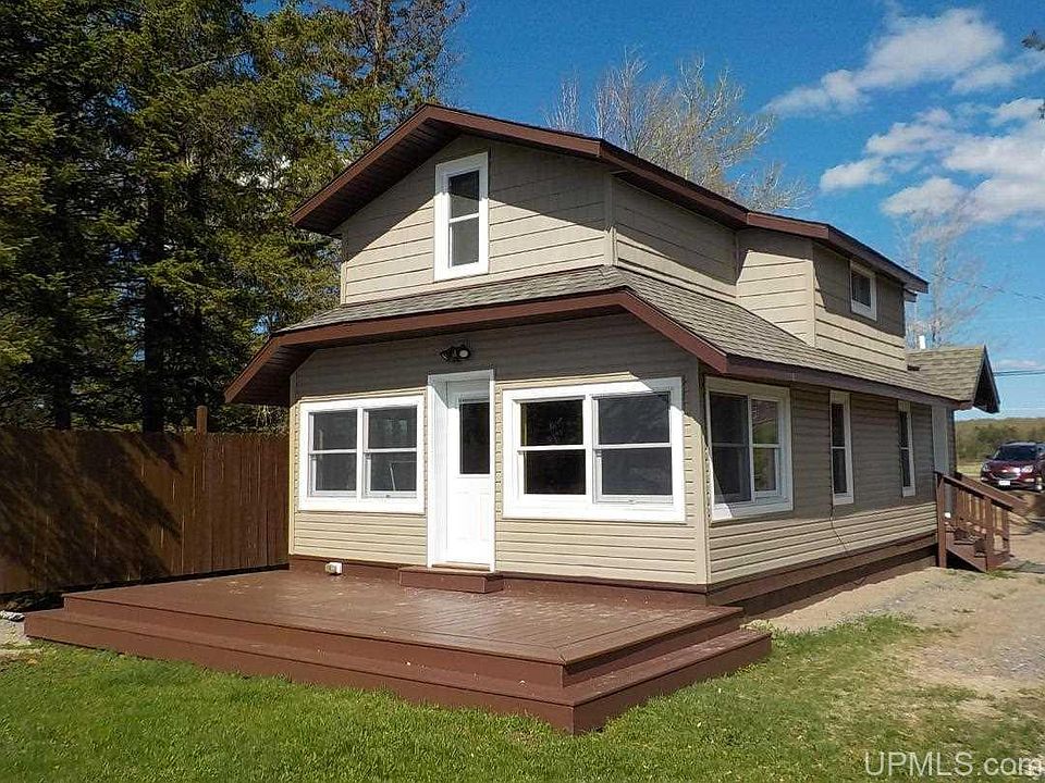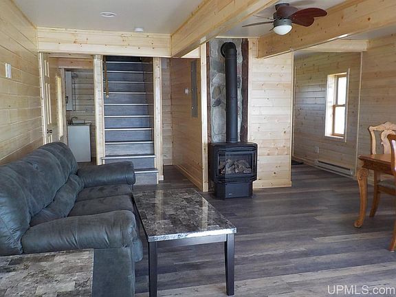 Perfect U.P. cottage with sandy beach and Southern exposure on beautiful Sunset Lake. No projects, just pack your bags and head to the lake. Many updates including newly remodeled kitchen, 2 updated baths: main floor half bath includes new laundry set up. Easy care laminate flooring in the open living - dining room along with lots of windows to enjoy the Lake, which is just a stones throw away. 3 sleeping areas upstairs including one walk-thru bedroom. This property has the best kid friendly frontage with crystal clear water and excellent wiggle your toes kind of sandy bottom frontage. Deck off lake side of cabin and nice level lot plus township water & sewer. Sunset lake is an all rec lake, 545 acres in size. Fish this lake for Walleye, Northern, Large Mouth Bass, Bluegills, Crappies and Perch. Bring on Summer!