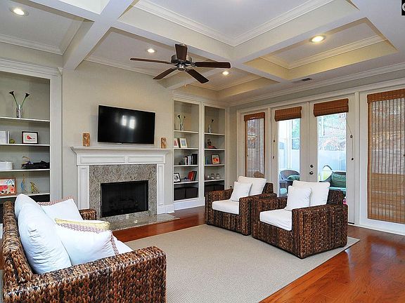 - Living Room: Fireplace, Floors-Hardwood, Books, Ceiling Fan, Recessed Lights