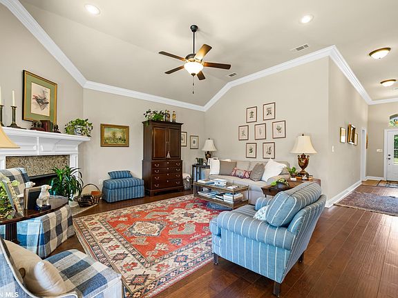 What a find! Just minutes from downtown Fairhope. Immaculate one owner home that is better than new. This 3 bedroom, 2 bath home has loads of upgrades and special features. The owner has added cased windows, heavy crown molding throughout, canned lighting, wood flooring in living room and all bedrooms. Brick and vinyl exterior. Kitchen has granite countertops, large pantry, stainless appliances with gas cooktop and loads of cabinets. Split bedroom design. Spacious primary bedroom and adjoining bath with dual vanities, large soaking tub, private water closet, separate shower and walk-in closet. Back porch and patio overlook large, privacy fenced backyard with beautiful landscaping. Irrigation system in front and back yard. Gold Fortified. All Information provided is deemed reliable but not guaranteed. Buyer or buyer’s agent to verify all information.