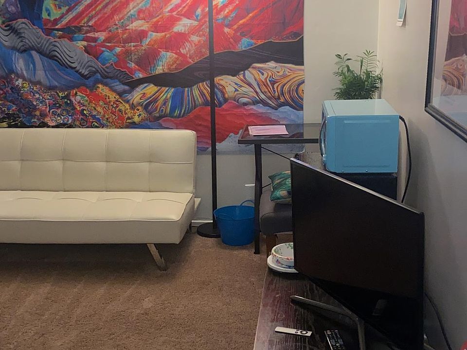 Beach is 8 blocks away. Massive bedroom with private bath and entrance. Walk in closet. Can fit queen bed, desk, couch, exercise equipment. Shower and bathtub. 306 square feet. Window faces south side. Storage available garage for bike. No pets. Utilities are shared.