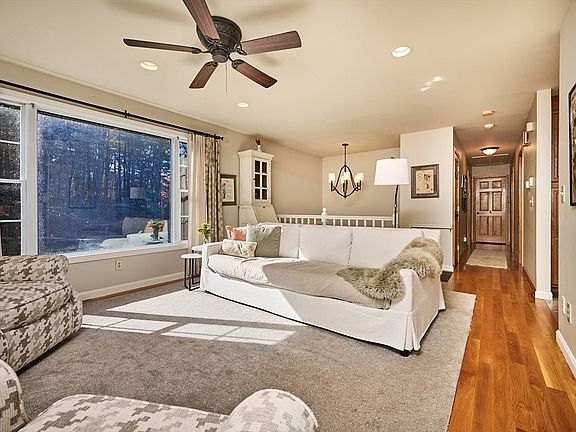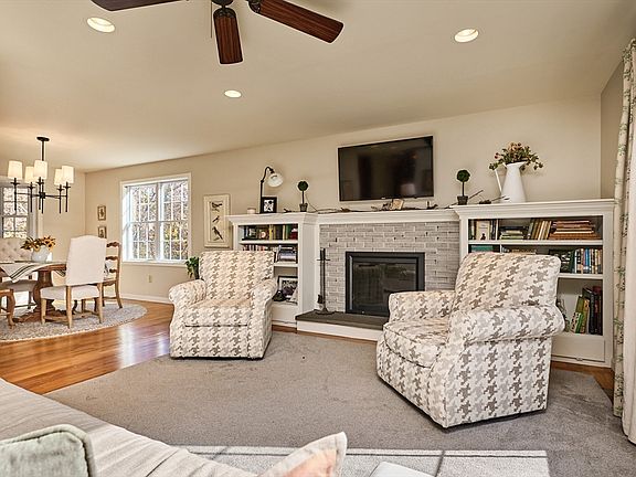 West Holyoke gem nestled on 2.41 acres overlooking pond and woods. A sophisticated interior features large, updated kitchen with granite counters, tile floors, and sleek Café appliances, complemented by a spacious breakfast bar. Adjacent dining room opens through glass sliders to a generous 3-season room. Inviting living room with fireplace, custom bookshelves, and a picture window framing tranquil views outside. Down the hall are the main bath and 3 good-size bedrooms, including the primary suite featuring en suite bath with tile shower. The tastefully finished lower level offers versatile space for a family room, home office, or a potential 4th bedroom, along with a 3rd full bath, laundry room, and screened porch. Outdoors, enjoy patios, perennial gardens, and woodland trails. Additional features include an oversized 2-car garage, a new roof installed in 2022, central air, and convenient access to a trail system right across the street. Effortless living in a serene setting!