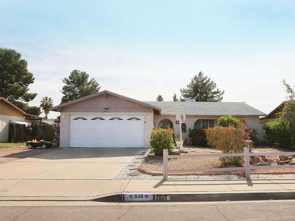Beautiful single story home with 3 beds, 2 baths, 1,253 sq. ft of living space and a 2 car garage with a lot size of 7,039 sq. ft. The kitchen includes range, refrigerator, disposal, dishwasher and built in microwave! House has a split floor plan with a dining room, carpet and tile throughout all the major walking areas, inside laundry room with washer and dryer. Master suite is a large room with tile flooring, carpet in the other bedrooms. Backyard features a fenced in pool and grassy area! This home has awesome bones and won''t last long! Happy showing!